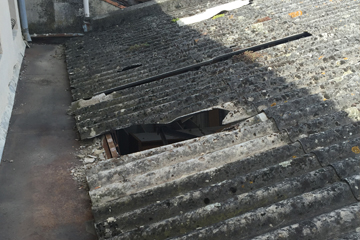 Avec le temps, le toit voit son aspect détérioré sous l'effet de l'érosion et des mousses,